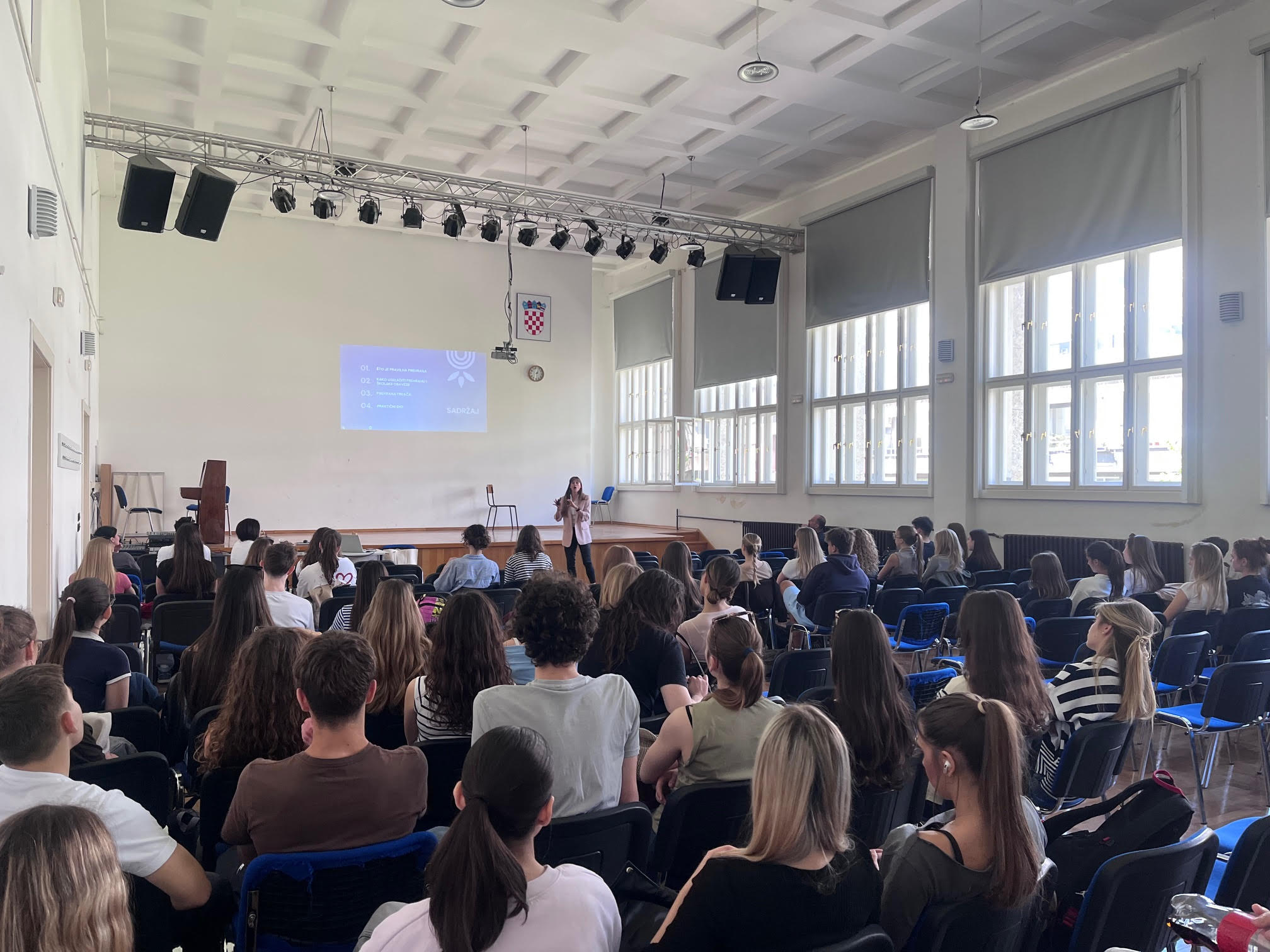 Predavanje je održala bivša učenica naše škole, nutricionistica Martina Dadić, koja je svojim znanjem i iskustvom dodatno motivirala učenike te im pružila korisne savjete za nadolazeći sportski izazov.