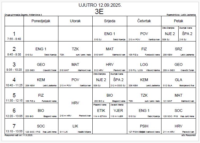 Raspored za jutarnji turnus 3.e razreda